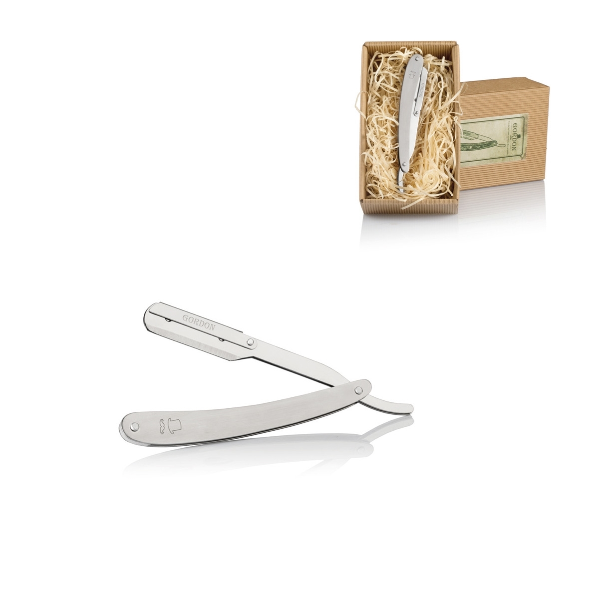 Ξυράφι/ φαλτσέτα ξυρίσματος Gordon από σατέν μέταλλο. Διαθέτει την κλασική μισή λεπίδα.