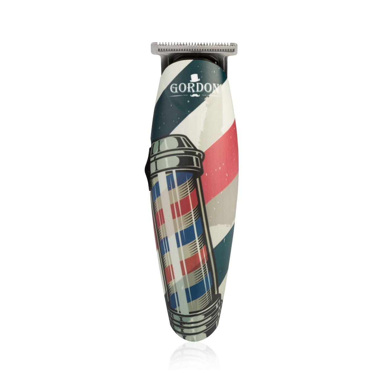 Κουρευτική μηχανή trimmer της Gordon "Barber Pole" σε συλλεκτική έκδοση, έχει Λεπίδα T-Blade από ανοξείδωτο ατσάλι. Μπορεί να χρησιμοποιηθεί με ή χωρίς καλώδιο. Με μπαταρία λιθίου και χρόνο επαναφόρτισης μόνο 90 λεπτά. Η συσκευασία περιλαμβάνει 4 χτενάκια: 1,5 - 3,0 - 6,0 - 9,0 mm.
