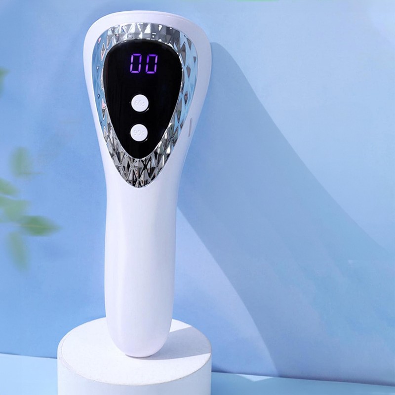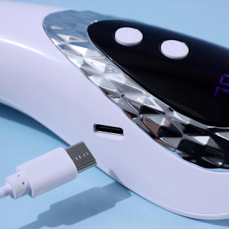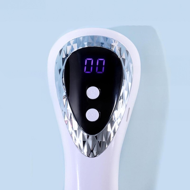 Μικρό φορητό, ασύρματο φουρνάκι/λάμπα με ψηφιακή οθόνη για γρήγορο πολυμερισμό ή "πολυμερισμό με λάμψη", ιδανικό για όλα τα προϊόντα που πολυμερίζονται με φως κατά τη διάρκεια της εφαρμογής. Ιδιαίτερα χρήσιμο όταν εργάζεστε με καλούπια dual form για την παροχή σταθερότητας κατά την πρόσφυσή τους στη φυσική πλάκα των νυχιών ή για την τοποθέτηση μεγαλύτερων διακοσμητικών νυχιών. Διαθέτει δύο λειτουργίες χρονοδιακόπτη: 60 δευτερόλεπτα και 90 δευτερόλεπτα.