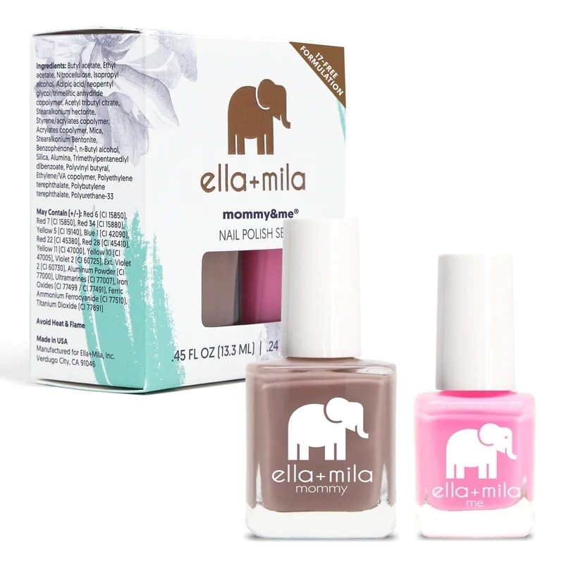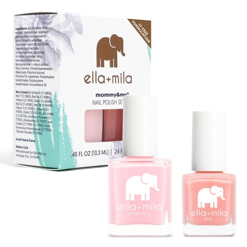 Σετ βερνίκι νυχιών, με ένα μπουκάλι βερνίκι νυχιών "mommy" (14,78 ml) και ένα μπουκάλι βερνίκι νυχιών "me" (7 ml).