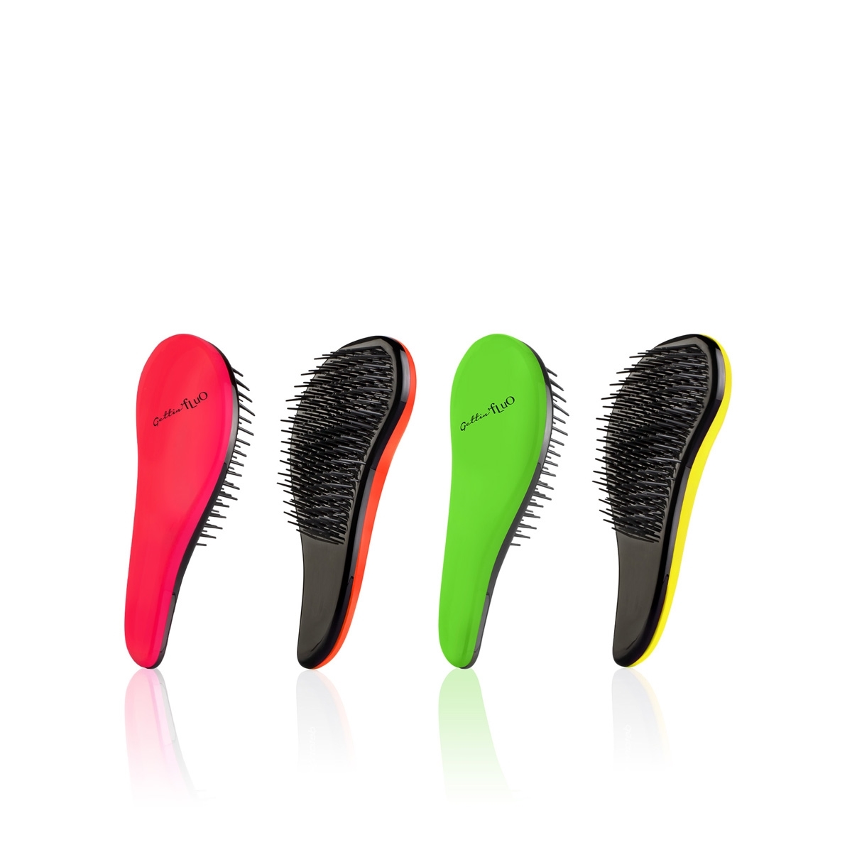 Η βούρτσα μαλλιών Gettin'fluo που χρησιμοποιείται για κάθε ανάγκη, τόσο στην παραλία για να ξεμπερδέψεις τα πιο δεμένα μαλλιά, όσο και στο σπίτι για να χτενίσεις τα εξτένσιόν σου. Σε 4 φθορίζοντα χρώματα